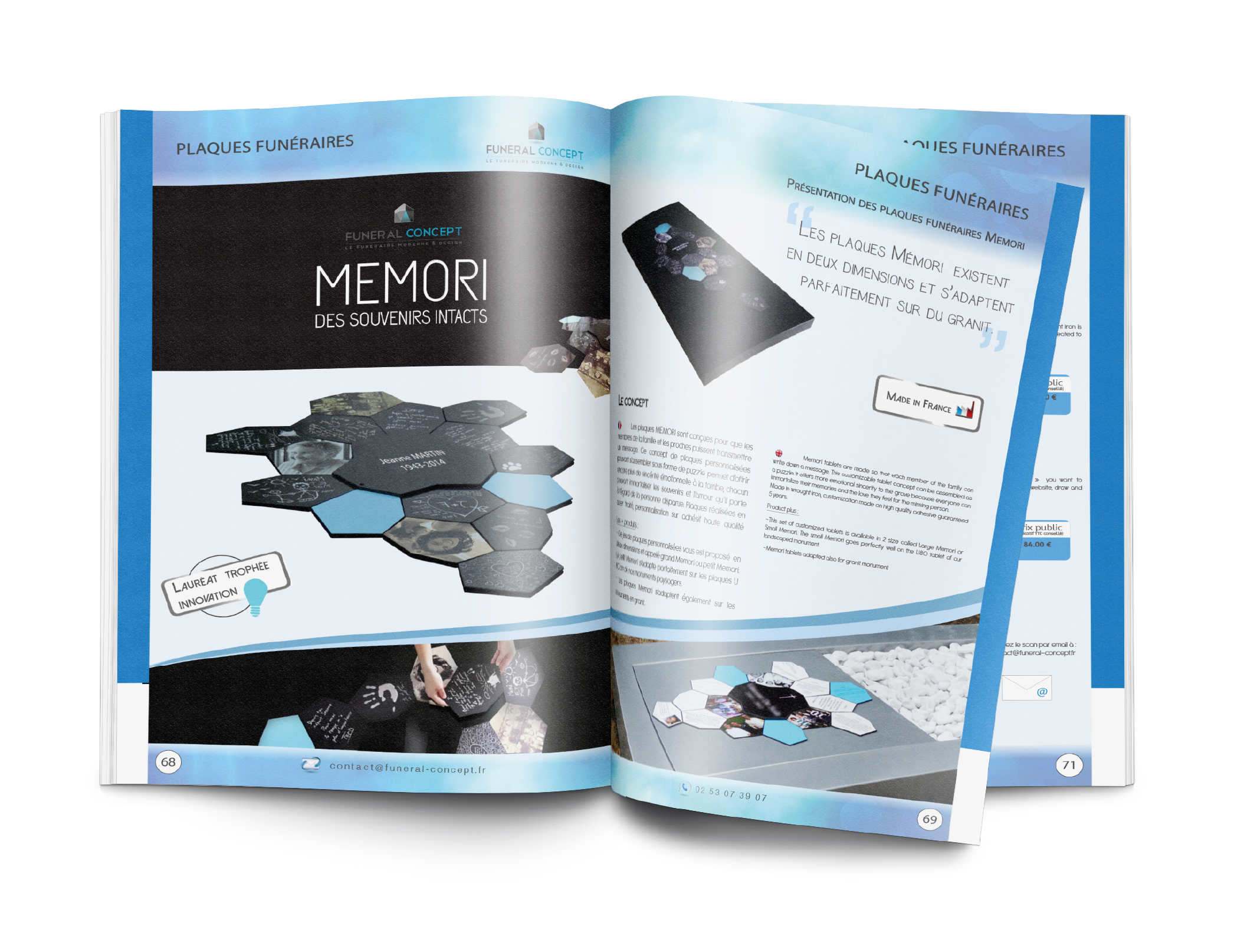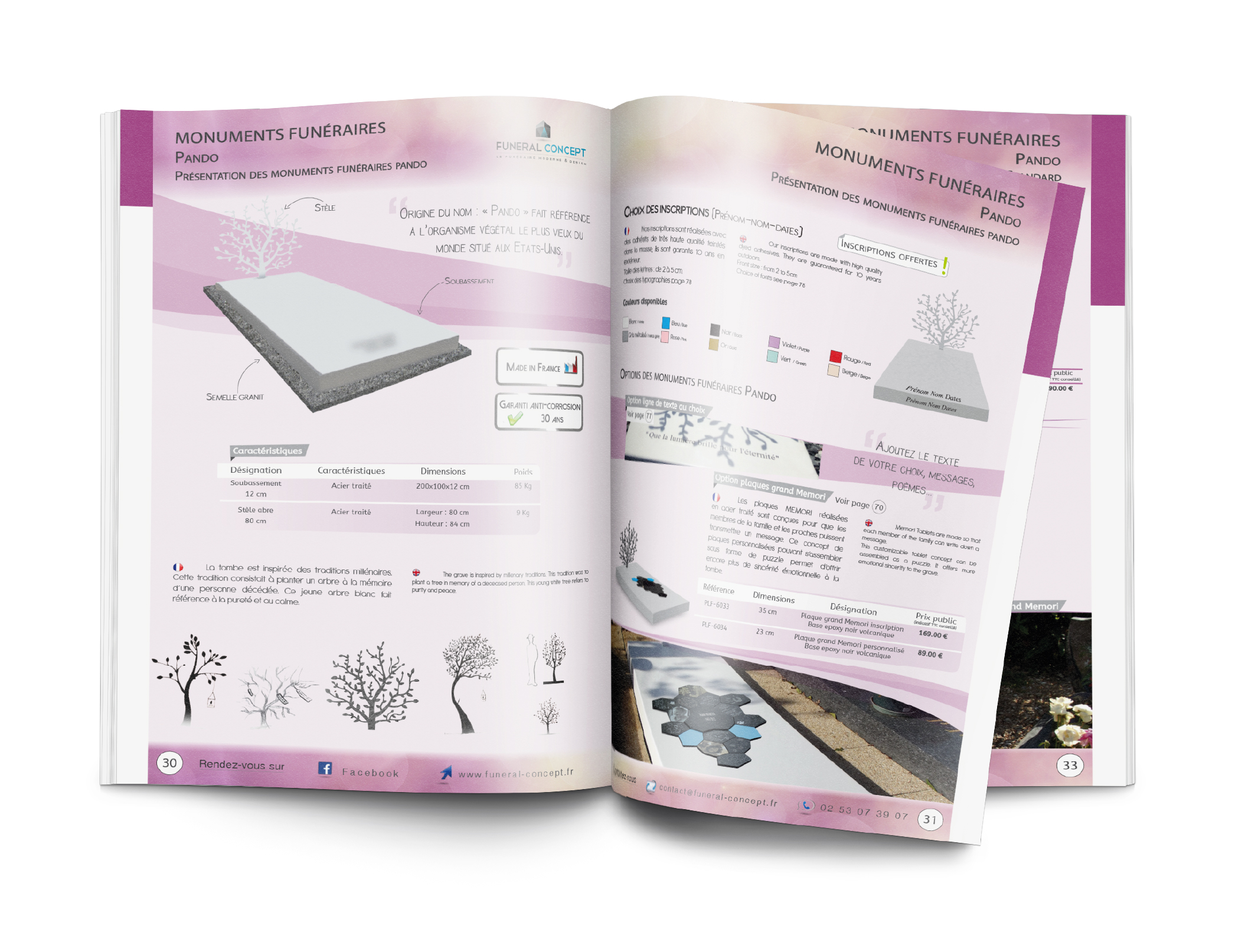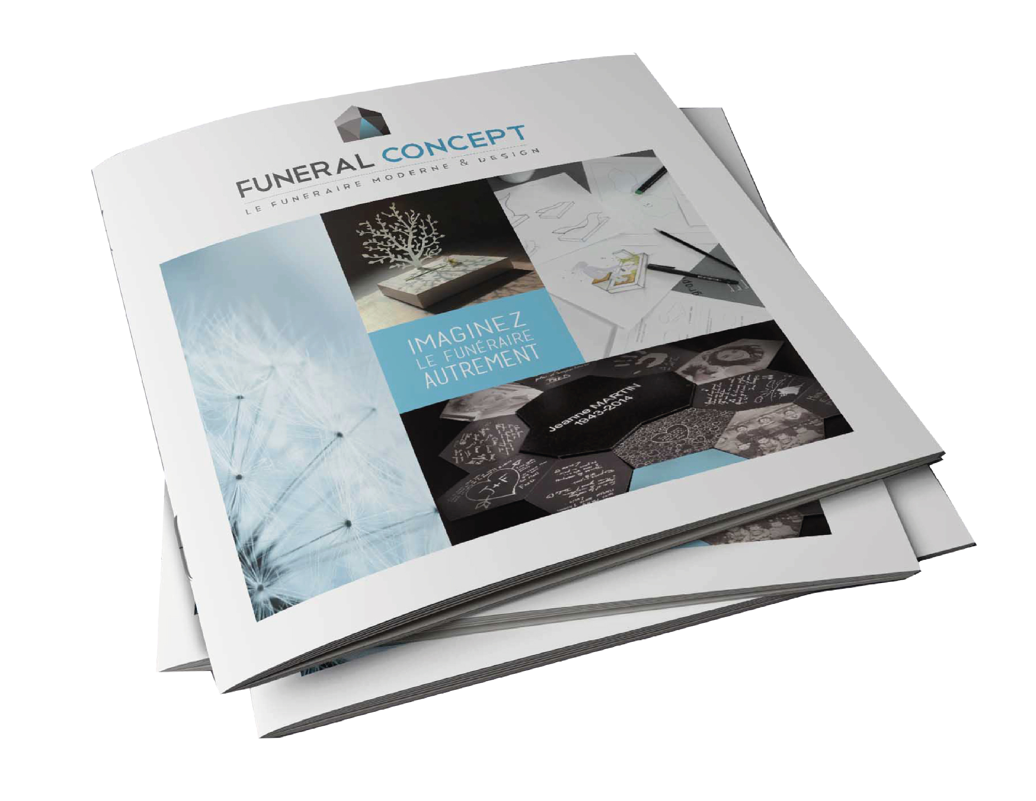 En tant que graphiste freelance spécialisée en design éditorial, j’ai conçu le catalogue de Funeral Concept, une marque dédiée à l’univers funéraire.
