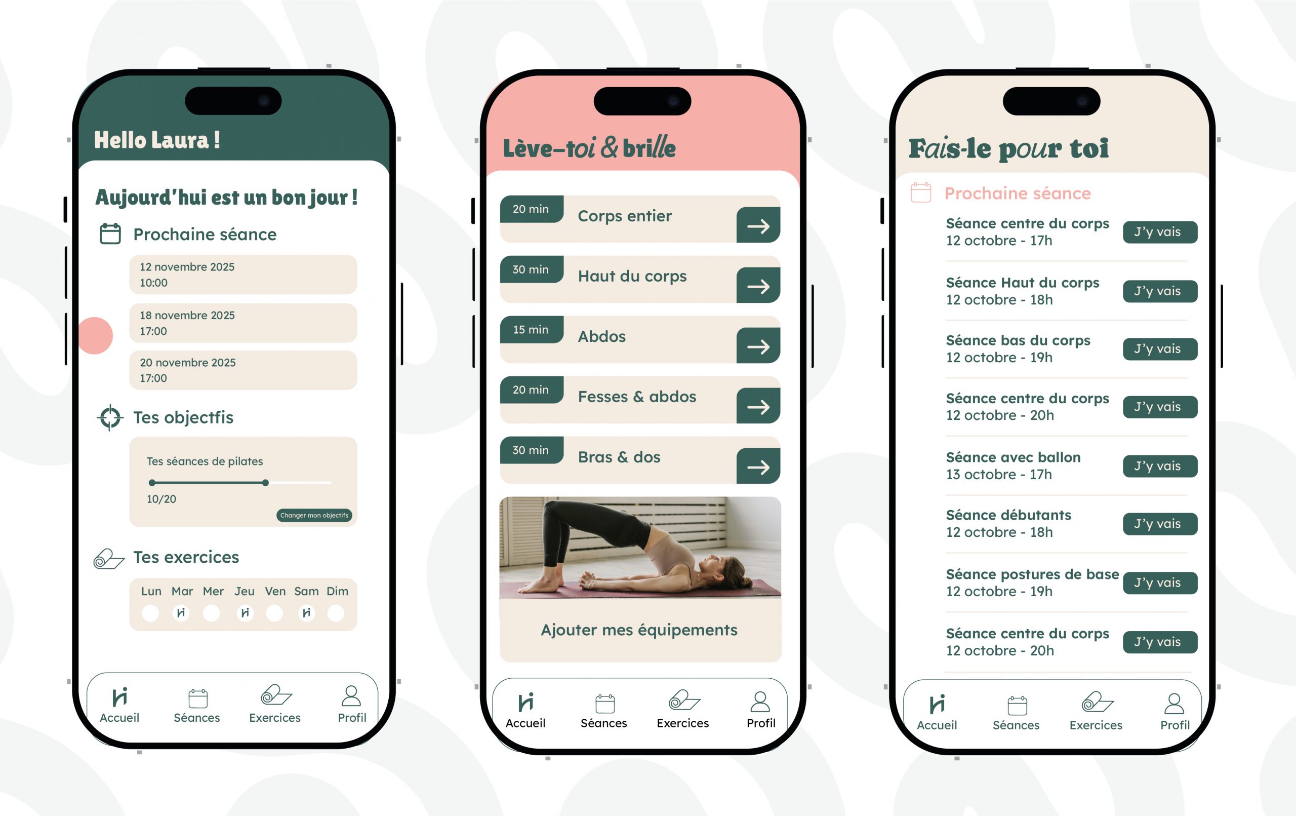 une charte graphique douce et féminine, inspirant sérénité et énergie,
